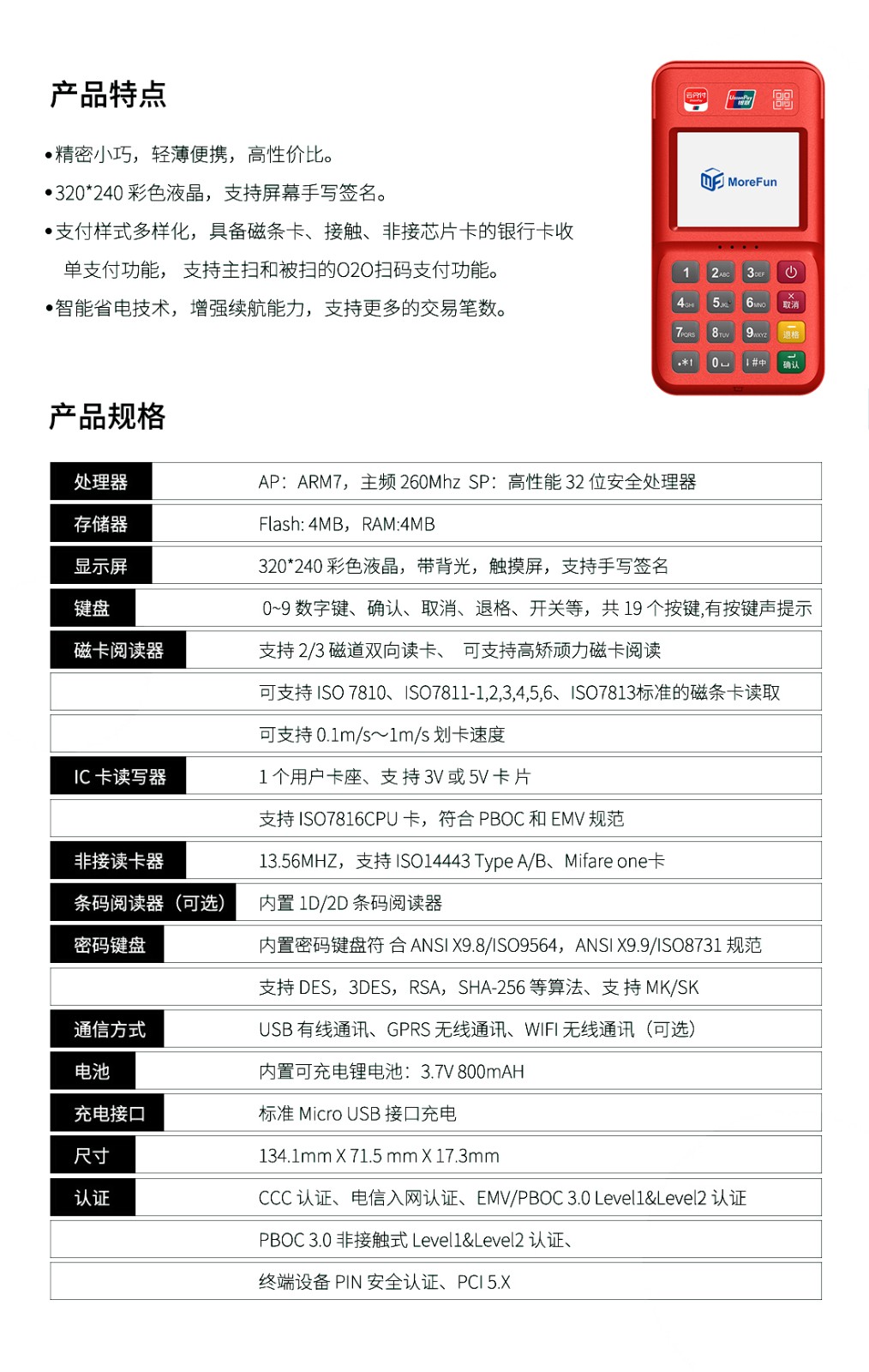 首页>>湖北产品中心>>湖北手持无线POS 湖北电银支付-4G+扫码枪 高配版 * 性能优越:32位高性能ARM11安全CPU;整机通过业内更先进的PCI PED4.X 安全认证及国内受理终端PIN输入设备安全评估检测认证,多项措施保障金融交易的安全;* 时尚外观:外形小巧携带方便,高抗跌落性能、宽工作温度、防水防尘设计、外壳坚固耐刮、户外携带式作业更加耐久可靠。* 通讯备份:支持2G-3G扩展;* 超长续航:3.7V-800毫安稳定续航能力,智能电池管理保证持续工作18小时,待机72小时。 标准配置 返 回